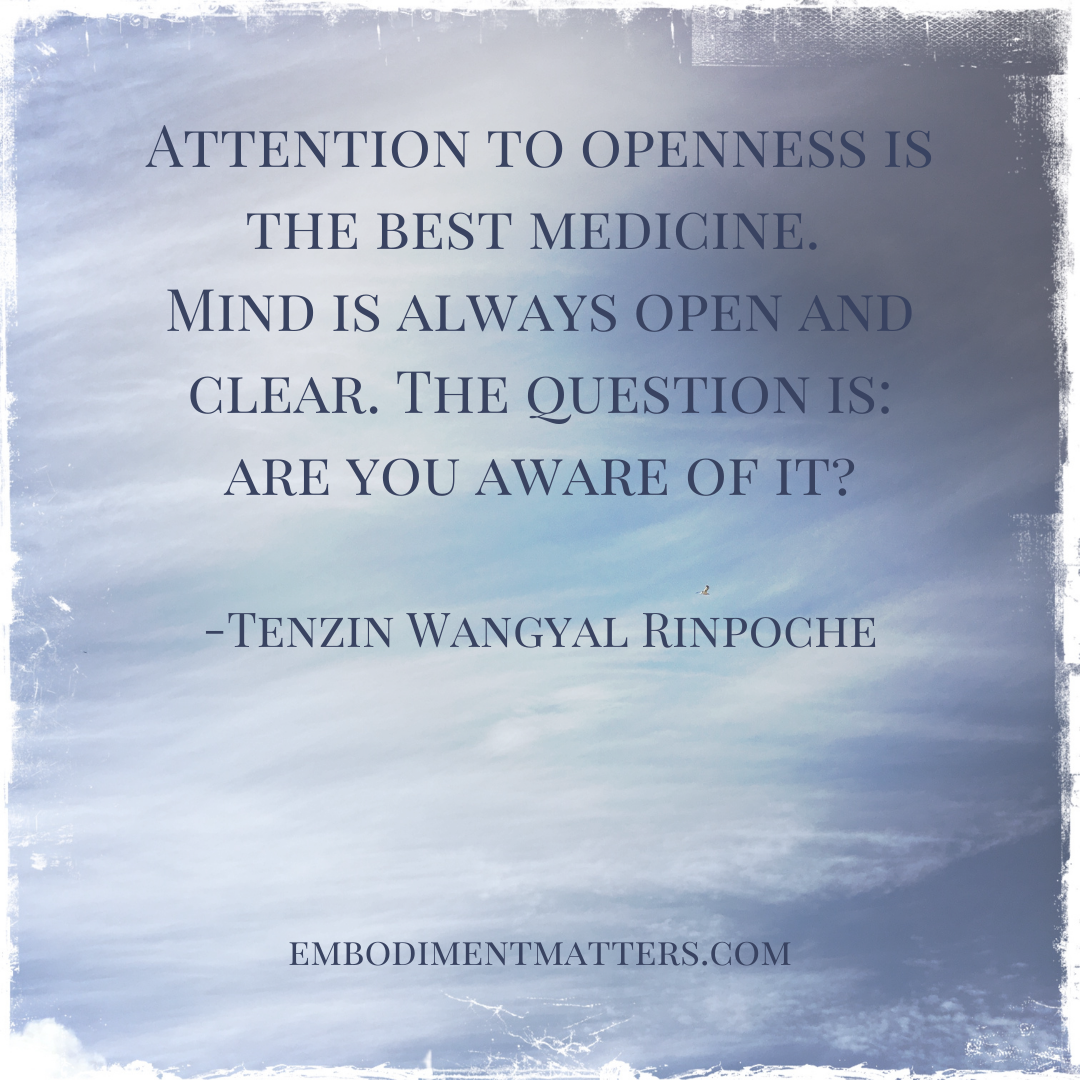 When we are fully inhabiting our embodied selves as we sit in spacious silence, we are fully inhabiting our meditation and the vast expanse of being.