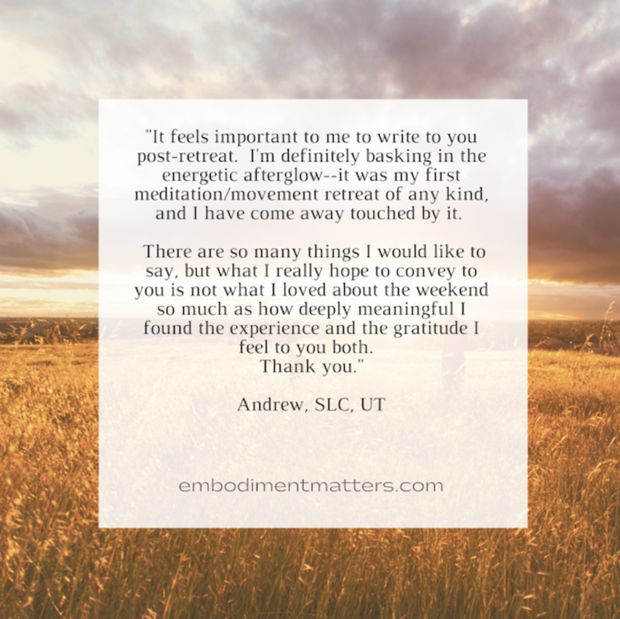 "I love the schedule and format of this retreat. An immersion into the felt sense experience, with repeated Awareness Through Movement lessons followed by sitting practice. A loving way to let “heart-mind” take center stage.